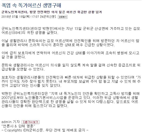 [±ºÀ§ÀϺ¸] ±ºÀ§³ëÀκ¹Áö¼¾ÅÍ, µ¶°Å³ëÀÎ »ý¸í±¸ÇØ