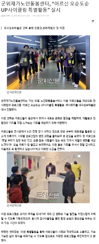 [±ºÀ§½Å¹®] ±ºÀ§Á¦°¡³ëÀε¹º½¼¾ÅÍ-"¾î¸£½Å ¿À¼øµµ¼ø UP»çÀÌŬ¸µ Ưº°È°µ¿"½Ç½Ã